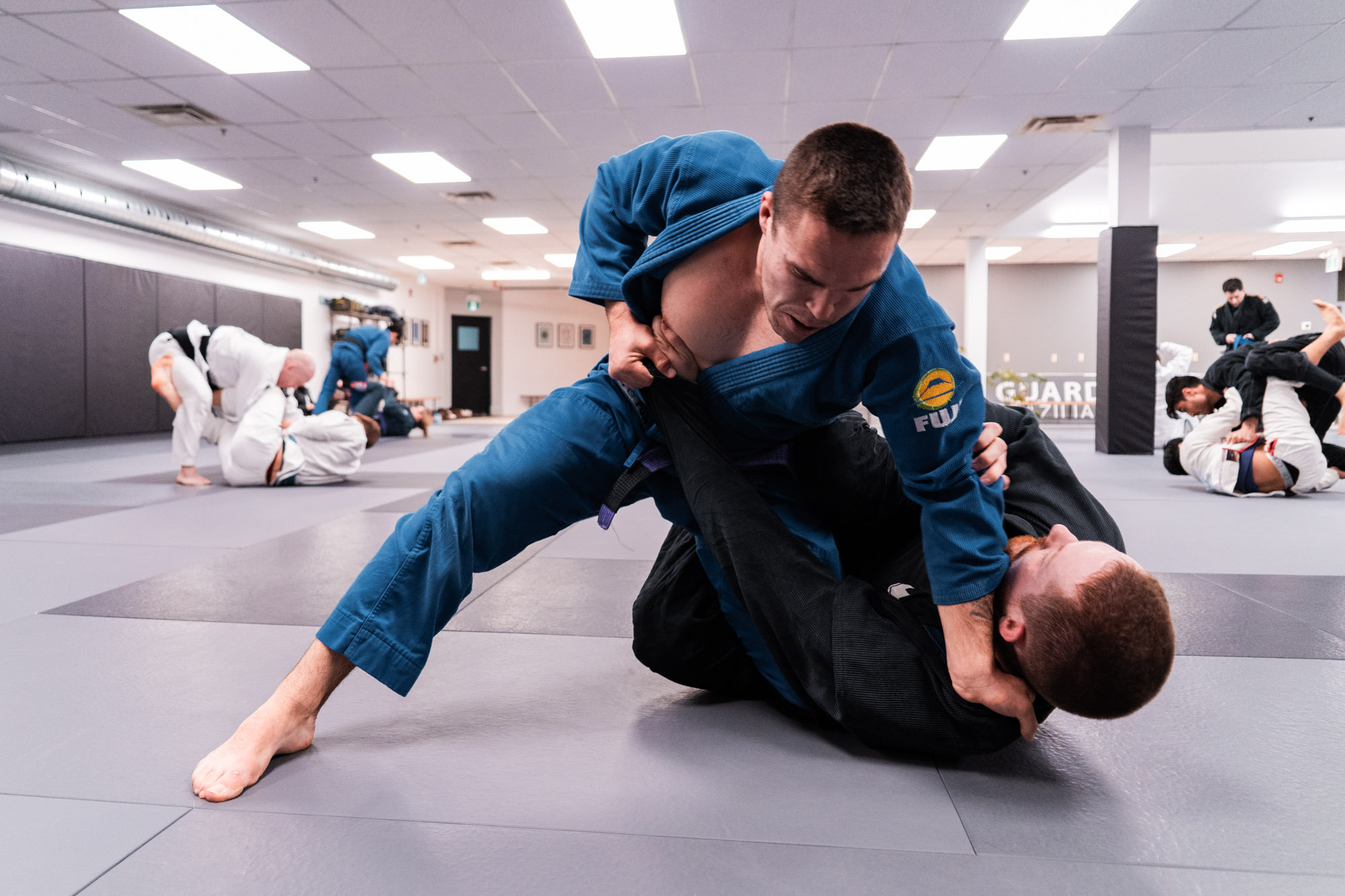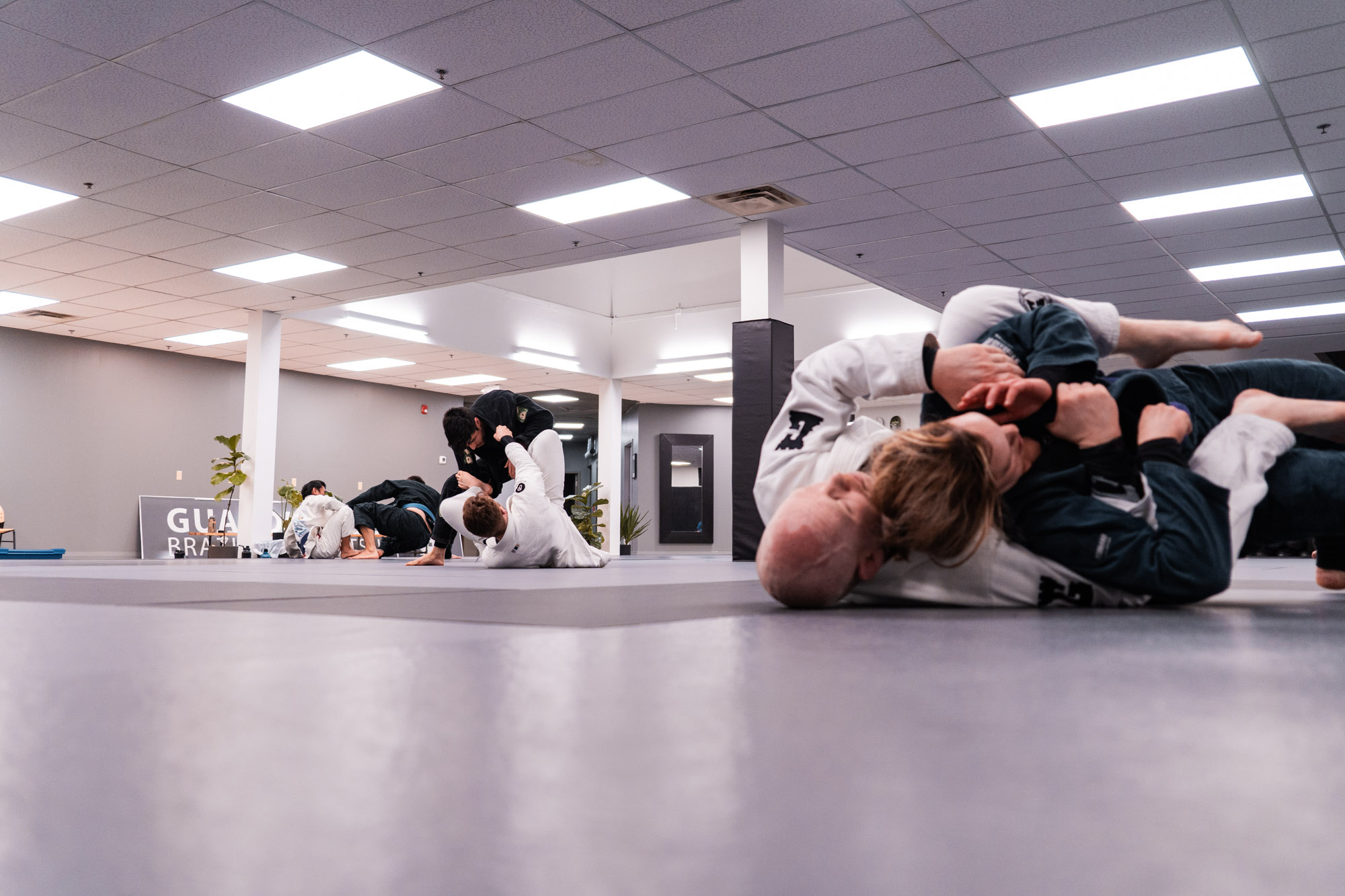 Centrally located in downtown Kitchener, Guardhouse BJJ offers a safe, fun, and supportive environment for everyone. The spacious training space features premium-quality Zebra mats on top of a spring subfloor, allowing you to train BJJ, takedowns, and judo throws in complete comfort. There are multiple restrooms and showers on site. Hygiene is of the utmost importance in our gym - the mats are cleaned with industrial-strength disinfectant daily, and flip flops are required to be worn at all times throughout the gym when off of the mats.
